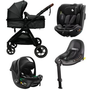 Newborn Pram – Palms Stroller with Bassinet, Car Seat and Rotating ISOFIX Base (Black)